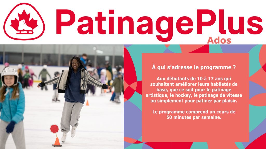 Patinage Plus est le programme vedette d’initiation au patinage de Patinage Canada! Adapté pour les débutants de tout âge, il comprend les mouvements fondamentaux et les habiletés de base, fondés sur les principes du développement à long terme de l’athlète (DLTA) de Sport Canada. Patinage Plus met l’accent sur le savoir-faire physique et les habiletés fondamentales exigées pour pratiquer tout sport de glace.